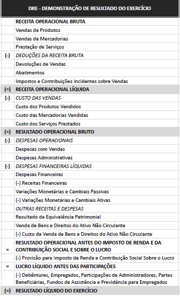 A maneira como as empresas devem discriminar a Demonstração do Resultado do Exercício é definida pela Lei das Sociedades por Ações Lei nº 6.404/1976, em seu artigo 187.